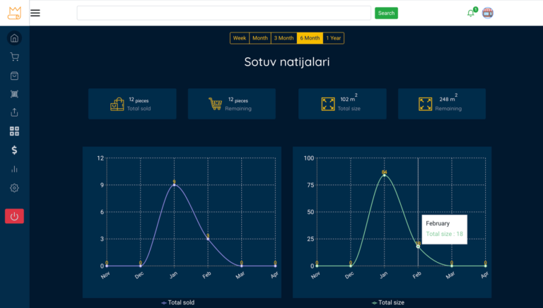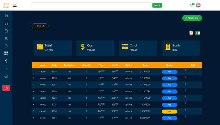 This is a CRM application for carpet stores. The client did not have any system to keep track of his profit, expenses, and remaining items in the store. And we built him a system to manage these all in one place.